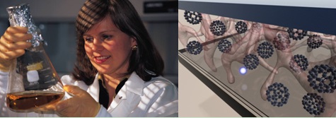 Organic Electronics comes from the materials used for manufacturing the device : conductive and transparent materials such ITO (Indium Titatium Oxide), semiconductor polymer materials (derivated from P3HT and Fullerene materials).