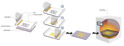 Printed Electronics comes from the manufacturing process : conductive and semiconductor materials are liquid and deposited by large area equipments (such as screen printing or slot die coating) at air ambient and temperature ambient conditions. This process solution offers competitive cost per area ratio compared to traditional silicon technology which requires high temperature and vacuum deposition.