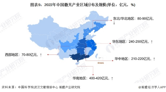 Guangdong, Jiangsu, and Hubei have the most complete industrial chains. The centralization of enterprises in South China, East China, and Central China is high, with relatively complete industrial chains, and their laser output values rank among the top in the country.