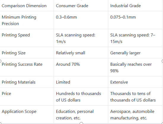 3D printing (additive manufacturing) is a manufacturing technology that forms three-dimensional objects by layering materials. It is widely used in both industrial manufacturing and personalized consumer sectors. Classified by application scenarios, it can be divided into industrial-grade and consumer-grade categories: