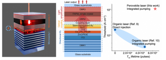Semiconductor lasers are important light sources in the field of information technology. As a new type of laser material, perovskite semiconductors have relatively low processing costs, are easier to integrate into silicon-based photonic platforms that can be mass-produced on a large scale, and have tunable emission spectra. They can achieve extremely low laser emission thresholds under optical pumping conditions, presenting excellent technological prospects. The external energy sources required to drive laser operation mainly include electrical and optical forms. However, optical pumping usually requires the assistance of bulky external light sources, which limits the application scope of the devices. Developing electrically pumped perovskite lasers is a significant challenge in the field of perovskite optoelectronics.