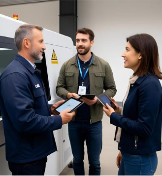 Figure 1: Occupational safety supervisors are measuring the concentration of pollutants in the air at a laser cutting operation site to confirm whether it complies with regulatory limits.