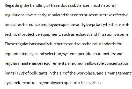 As mentioned earlier, most countries have established a complete legal framework for workplace safety and environmental protection, clearly requiring enterprises to protect employees from exposure to harmful air pollutants and stipulating legally binding regulations. only by introducing appropriate air pollution control technologies can the exposure limits set by regulations be achieved to ensure that enterprises are in compliance with the law.