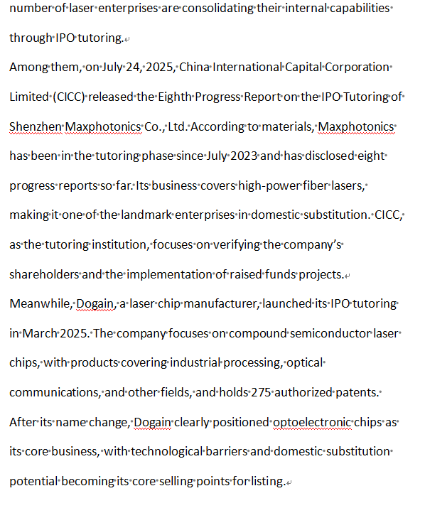 In addition to enterprises that have disclosed their IPO progress, a number of laser enterprises are consolidating their internal capabilities through IPO tutoring.