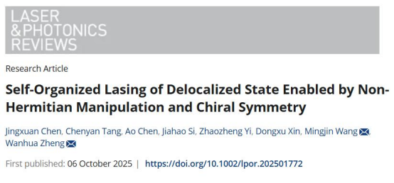 Entitled "Self-organized lasing of delocalized state enabled by non-Hermitian manipulation and chiral symmetry," this achievement was published in Laser & Photonics Reviews (DOI: 10.1002/lpor.202501772). Chen Jingxuan (postdoctoral fellow) and Tang Chenyan (Ph.D. candidate) from the Institute of Semiconductors, Chinese Academy of Sciences, are the co-first authors; Young Researcher Wang Mingjin and Academician Zheng Wanhua are the co-corresponding authors.
