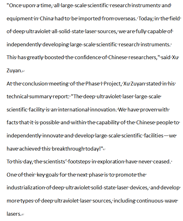 Today, the once virgin territory of deep ultraviolet lasers has blossomed into a flourishing landscape. Faced with boundless application possibilities, Xu Zuyan has repeatedly emphasized: "Breakthroughs in large-scale scientific instruments can never be the achievement of a single individual’s efforts. Instead, they are the fruits of collaborative efforts between the state, the Chinese Academy of Sciences, and various research institutions—they embody the crystallization of collective wisdom. No matter how the future unfolds, this fundamental truth will remain unchanged."
