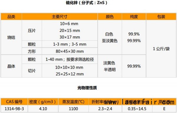硫化鋅是一種高折射率材料,能夠使用在光學(xué)及光電的應(yīng)用,
