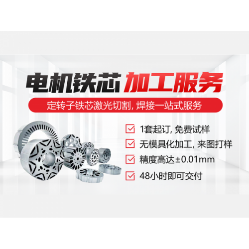 電機(jī)定轉(zhuǎn)子鐵芯切割加工服務(wù) 詳細(xì)信息 1、電機(jī)鐵芯無需制模,來圖即可加工; 2、加工精度±0.01mm; 3、加工周期48小時; 4、無模具化加工,成本立省70% 5、產(chǎn)品可直接疊片,無后處理 |