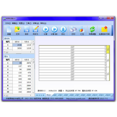 5.高性能、高速度開料算法,材料利用率、余料優化、切割工作量小化、達到理想水平;