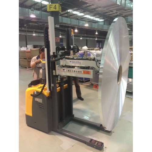 鋁卷吸吊機,搬運車主要應用翅片機上料、鋁卷吸附翻轉90度為企業解決人工上下料、翻轉問題