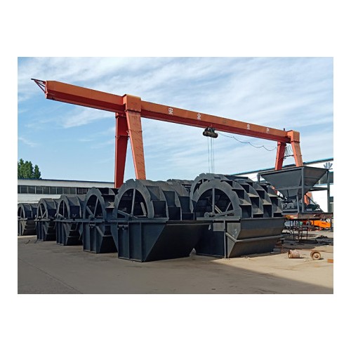 水洗輪是分離國內砂石行業實踐狀況研制消費的配合制砂機運用的洗砂設備。工作時,電機經過三角帶、減速機、齒輪減速后帶動葉輪遲緩轉動,砂石有給料槽進入洗槽中,在葉輪的帶動下翻騰,并相互研磨,除去掩蓋砂石外表的雜質,同時毀壞包覆砂粒的水汽層,以利于脫水;同時加水,構成強大水流,及時將雜質及比重小的異物帶走,并從溢出口洗槽排出,完成清洗作用。潔凈的砂石由葉片帶走,并從旋轉的葉輪倒入出料槽,完成砂石的清洗作用.