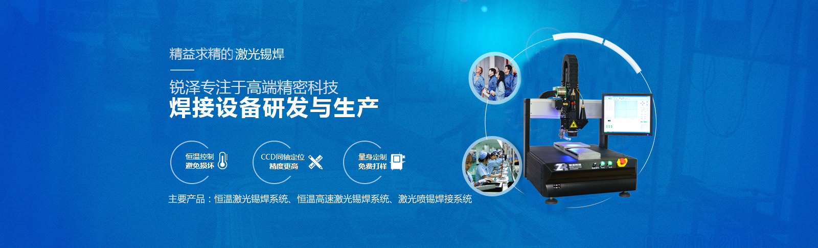 武漢銳澤科技發(fā)展有限公司專(zhuān)注于激光微精密焊接加工領(lǐng)域的技術(shù)開(kāi)發(fā)與研究,精密加工工藝在航空、航天、機(jī)械、電子、鋼鐵、冶金、醫(yī)療衛(wèi)生等多行業(yè)均有應(yīng)用。主要涉及產(chǎn)品:恒溫激光錫焊系統(tǒng);恒溫高速激光錫焊系統(tǒng);激光噴錫焊接系統(tǒng)。經(jīng)過(guò)對(duì)市場(chǎng)的不斷探索,自主開(kāi)發(fā)了同軸CCD攝像定位及加工監(jiān)視系統(tǒng);實(shí)時(shí)的溫度反饋系統(tǒng);激光,CCD,測(cè)溫,指示光四點(diǎn)同軸焊接模式,極大提升了焊接精度和加工良品率,完美的解決了行業(yè)內(nèi)多光路重合難題并避免復(fù)雜調(diào)試。公司經(jīng)過(guò)多年的探索與投入,研發(fā)出的最新科技產(chǎn)物激光噴錫焊接系統(tǒng),采用錫球噴滴焊接,錫球應(yīng)用范圍微達(dá)350-760μm,為攝像頭模組/馬達(dá)行業(yè)發(fā)展提供堅(jiān)實(shí)的加工支持。 [詳細(xì)介紹]