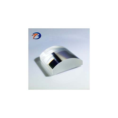 平凸柱面鏡成線狀像,用于僅需控制光束的一個方向的尺寸。此透鏡的材料為BK7,所以不適用于紫外波長。 與球面透鏡相比,平凸柱面鏡的制造難度更高。要合理選擇材料(紋理,氣泡,雜質(zhì),均勻性),注意影響散亂的因素(劃傷,凹痕,光澤),高質(zhì)量研磨。可以分為沒鍍膜和鍍了可見光帶域的防反射多層膜透鏡。透鏡的設(shè)計波長為546.1nm(綠色汞譜線的e線)。由于焦距隨波長變化,所以被用于其它波長時,其焦距也隨之變化。