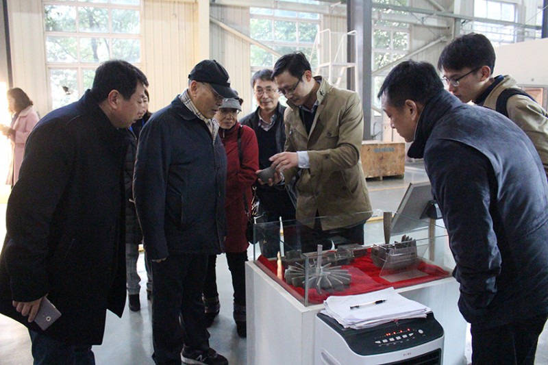 周廉院士一行仔細觀看送粉金屬3D打印樣件