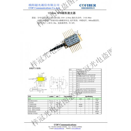 蝶形激光器:980nm,1480nm泵浦激光器,1310nm發射機專用,CWDM 和 DWDM激光器,有害氣體檢測激光器。