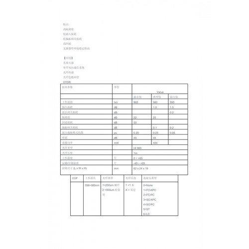 光纖延遲線:手動(dòng)光延遲線,電動(dòng)光延遲線,固定分段延遲線(保偏型,延遲范圍0~1500ps,波長(zhǎng)980~1650nm)。