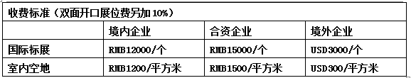 1 3mx3m國際標準展位包括三面圍板、楣板、一桌兩椅、兩盞射燈、220v電源插座(其他展具及服務產生的費用由客商自理)