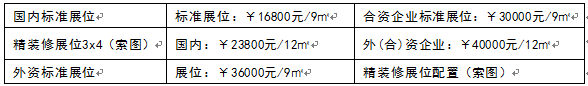 國內標準展位 標準展位:¥16800元/9㎡ 合資企業標準展位:¥30000元/9㎡