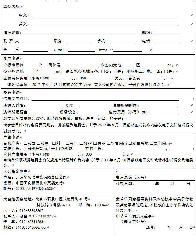1、參展單位請詳細填寫《參展申請表》,并加蓋公章后傳真或交寄至大會組委會。