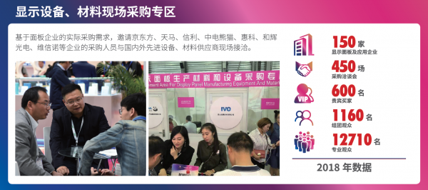 基于面板企業(yè)的實際采購需求,邀請京東方、天馬、信利、中電熊貓、惠科、和輝光電、維信諾等企業(yè)的采購人員與國內(nèi)外先進(jìn)設(shè)備、材料供應(yīng)商現(xiàn)場接洽。