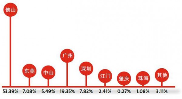 以佛山為中心,輻射至廣州、中山、江門等毗鄰城市,聚集了十一個形成規模的集群產業,對鈑金設備有著大量和持久的需求,這些產業是金融自助設備,不銹鋼加工,鋁幕墻、鋁門窗加工,燈具燈飾,電器制造,酒店(廚衛)用品,舞美設備,游藝設備,軌道交通,電梯制造,自動門行業。