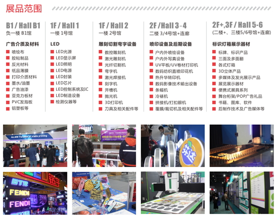 展會展品豐富新穎,按類別分為五大展區(qū)七大展館,匯集了廣告介質(zhì)及材料、LED發(fā)光源、雕刻設(shè)備、噴印設(shè)備、標(biāo)識燈箱展示器材等各類高端品牌產(chǎn)品,覆蓋了整個廣告制作產(chǎn)業(yè)鏈。