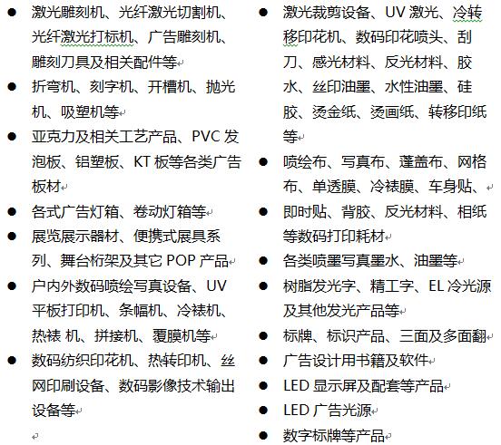 SIGN CHINA始于2003年,開(kāi)創(chuàng)性地將激光雕刻/切割/焊接/折彎設(shè)備、標(biāo)識(shí)標(biāo)牌、燈箱、廣告板材、POP、戶內(nèi)外數(shù)碼噴印設(shè)備、數(shù)碼印花設(shè)備及墨水、數(shù)碼打印耗材、廣告機(jī)、數(shù)字顯示/觸控/軟件及配套、商超零售、LED顯示屏、LED廣告光源、LED照明、商業(yè)顯示及系統(tǒng)集成等產(chǎn)品同臺(tái)分區(qū)展示,成功為廣告行業(yè)打造了首個(gè)最為完整的一站式商貿(mào)采購(gòu)平臺(tái)。經(jīng)過(guò)十七年的全球推廣和品牌累積,已發(fā)展成為全球最具影響力、層次最高的廣告行業(yè)盛會(huì)之一,同時(shí)也是業(yè)界公認(rèn)的觀眾最具全球化和國(guó)際化的展會(huì),被業(yè)界譽(yù)為全球廣告行業(yè)“奧斯卡”年度盛會(huì)。