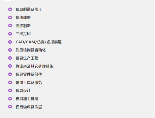 展品涵蓋模具制造及加工,模具零件及部件,模具設計,模具加工機械,壓鑄丶沖壓等全領域,更與現代化制造業接軌,增設3D打印,快速成型等板塊,全面助力制造業轉型升級。
