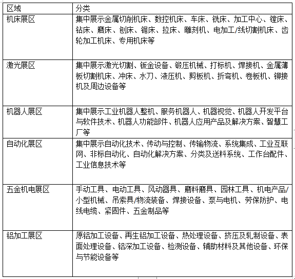 【招展范圍】機床展區、機器人自動化展區、激光設備展區、鋁加工及五金展區
