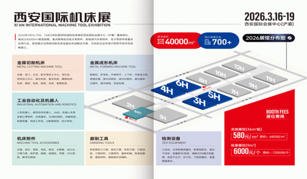 2026年3月16-19日,CMES華機展|西安國際機床展在西安國際會展中心(浐灞)重磅舉辦。展會以40000㎡展覽規(guī)模,重點聚焦航空航天零部件、新能源汽車零部件、電子零部件等重點應用行業(yè),現(xiàn)場展示應用端創(chuàng)新機床設備及先進解決方案,為機床企業(yè)布局中西部市場開創(chuàng)戰(zhàn)略窗口。