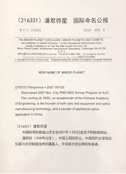 您曾榮獲“1978年全國科學(xué)大會獎”和“1998年國家科技進(jìn)步一等獎”等獎項(xiàng)。2019年4月6日,為感謝您對近地天體望遠(yuǎn)鏡給予的技術(shù)支持,國際小行星中心和國際小行星命名委員會發(fā)布國際命名公報(bào),確定國際編號為216331號小行星被命名為“潘君驊星”。您怎樣看待這些重要的學(xué)術(shù)榮譽(yù)?