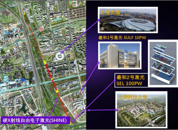 今天在這里講強激光與加速器還是很有意義的。在我們的東北八公里左右,是最強的“羲和”激光,再往北,過川楊河就到達了張衡路。張衡路是以我們偉大的科學家的名字命名的,張衡路上有一臺我們國家從12年前就建設的同步輻射裝置,是一個30億電子伏特的電子加速器。離我們這再往東大概七公里有復旦大學上海質子重離子醫院,有一臺質子重離子的加速器。上海光源是加速電子,質子重離子加速器加速的是質子和碳離子。往西邊走跨過市中心到達嘉定區,那里有我們國家、也是目前為止全世界規模最大的幾臺激光裝置之一——“神光二號”裝置。離它不遠的瑞金醫院北院有我們國內科學家自己研制的首臺質子治療裝置。所以從我們這兒出發,一個小時以內我們可以到達很多重要的激光裝置和加速器。