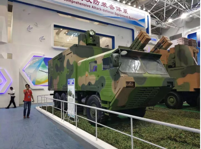 中船重工作為海軍裝備國家隊(duì),其展出的名為“車載激光攔截系統(tǒng)”的新型激光武器,充滿了艦載范兒,它直接使用了艦載近防武器的探測(cè)和火控系統(tǒng),唯一不同的是把原先的常規(guī)近防武器換成了激光發(fā)射器,該武器平臺(tái),包括后端的激光模塊,都被集成在一輛輕型戰(zhàn)術(shù)卡車上,激光發(fā)射器平常藏在卡車的箱體內(nèi),戰(zhàn)時(shí)則打開箱體的一部分露出發(fā)射器,進(jìn)行攔截射擊。該攔截器可以攔截低空飛行的無人機(jī)等“低慢小”目標(biāo)。