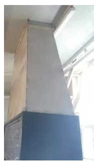 另外,激光切割機(jī)機(jī)身的設(shè)計(jì)考慮了自身共振的因素以確保精度,因此恒溫間不能與機(jī)身硬性接觸,主機(jī)與恒溫間需要減振夾層和絕熱層。冷卻裝置和電控箱在切割時(shí)會(huì)大量散熱,為了減少恒溫間里空調(diào)系統(tǒng)的壓力通常直接為其設(shè)置直通恒溫間外的散熱口,如圖3所示。這里還有一個(gè)小竅門,可以在這里開一個(gè)抽拉蓋。作用是夏天熱氣向恒溫間外排放,冬季熱氣直排到恒溫間內(nèi)以節(jié)約能源。