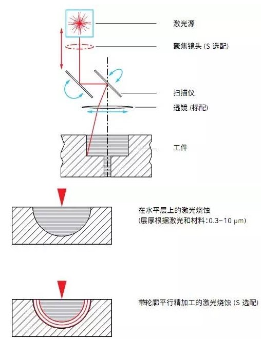 可加工非常細(xì)小形狀和型腔,3D激光雕刻和大坡度立壁的復(fù)雜零件,加工質(zhì)量高,加工過程安全。以3D-CAD文件為基礎(chǔ),因此沒有刀具成本和刀具磨損,也不需要生產(chǎn)相應(yīng)電極。