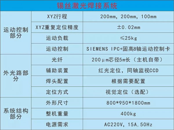 ◇ 系統采用半導體激光器,峰值功率低,滿足錫焊等低熔點釬料焊接要求;