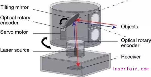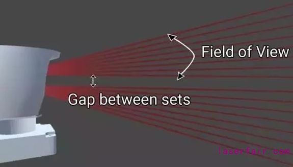 目前車載激光雷達,多是利用旋轉的線性掃描,有單線程或者多線程的.如下面兩張圖第一張圖是車載雷達單次掃描的示意,只能掃描一些線.比如64線程雷達單次只能獲得64個點的深度.然后如第二張圖的結構上面部分進行旋轉,每旋轉一定角度進行一次掃描,轉一圈得到360度的一幀3D圖像.這樣的物理結構導致車載雷達的幀率和價格一直不理想.Velodyne的64線程的激光雷達價格高達8W美金,這也從一定程度上也限制了使用激光雷達的自動駕駛的發展.