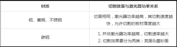 不同材質(zhì)的切割效果與激光器功率的關(guān)系