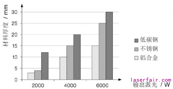 激光功率應和加工類型、材料種類和厚度相匹配。功率必須足夠高以至于工件上的功率密度超出加工閾值。