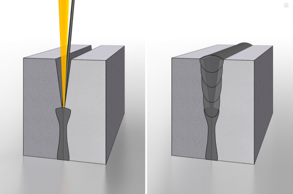 激光束定位在需要焊接的兩個板邊之間的接合處,同時在其前面插入填充金屬,這一過程產(chǎn)生高質(zhì)量的焊縫。