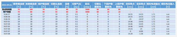 3. 保護鏡異常污染報警 鑒于溫升的速度問題,我們還提供了反應更靈敏的鏡片污染檢測。當鏡片污染數值異常升高時,對加工過程及時預警或進行干預。 圖3 切割頭鏡片污染報警圖標 切割氣壓監控及預警 普雷茨特切割頭氣壓傳感器能實時監測切割時的氣壓值。客戶可根據獲取的數值生成切割氣壓曲線圖,來輔助分析切割不良是否是由于氣壓變化的影響。同時,當無氣壓或氣壓太低時(氣壓太低鏡片會有炸裂風險),可預設報警機制來保證切割安全。 圖4 氣壓監控示例 4.焦點動態補償 切割時,尤其是高功率切割時,焦點位置會隨著鏡片溫升造成的熱透鏡效應而產生變化,導致實際切割焦點位置向上飄移,從而影響切割質量的穩定。通過對鏡片溫度的實時監測,在一定時間段內進而對焦點進行補償來保證切割質量的一致性。 5.隨動高度傳感器標定曲線實際應用 普雷茨特隨動高度傳感器可提供8條標定曲線以滿足不同切割工藝需求。通過不同的標定曲線可兼顧大距離檢測范圍和小距離檢測精度要求。穿孔或空跑時利用大距離范圍檢測實現工藝及安全需求;切割時利用小距離高精度檢測,來保證切割中噴嘴隨動高度穩定。例如坡口切割時,不同切割角度范圍就可以選擇不同的標定曲線。 6.切割頭日志文件記錄及分析 切割頭內部的所有監控數據,可作為工作日志文件導出。當切割頭出現問題時,可參考日志文件對切割頭各個參數進行排查。不僅方便用戶追溯之前的切割狀態,還能更好的了解切割時數據和切割質量之間的關系。 圖5切割頭日志文件 結尾 普雷茨特切割頭一直是激光切割行業內高端智能切割頭的代名詞,以智能、穩定、高效的產品優勢被市場所認可。普雷茨特作為一家為高功率激光切割關鍵組件配套的領導者,一直以客戶的需求為導向。我們為客戶提供最優質的光學組件以引領市場上最高功率的切割;不斷優化升級的的傳感器為實現真正的智能切割提供了數據的源頭。高功率加上實時監控的數據賦能激光切割設備的智能化,助力智能裝備制造的產業之路。