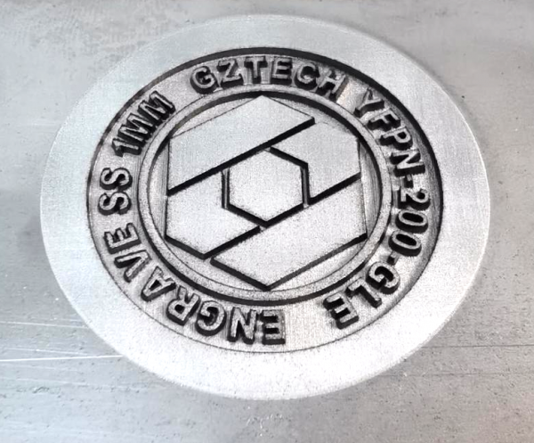1、不銹鋼深雕 不銹鋼是金屬制品中使用最多的材料之一,在不銹鋼上雕刻一定深度的字符或者圖案的需求非常之多。經測試,GLE 200W使用頻率190kHz,功率90%,速度2000mm/s,填充間距0.05mm,正離焦0.5mm,雕刻1mm深成品表面毛刺少,底紋細膩,深度均勻,去除效率40mm3/min。
