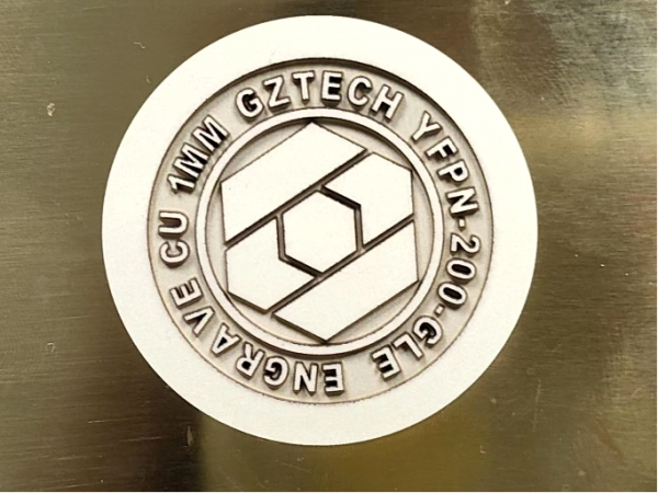 3、黃銅深雕 銅對1064nm紅外激光吸收率低,功率密度不夠易造成激光器高反報警甚至燒壞激光器內部光路。GLE 200W光束質量好,易聚焦小的光斑,能量密度達到銅材的損傷閾值使材料表面破環,可以極大提高材料加工過程中的吸收率,不易造成高反現象。此外GLE 200W還配有高度隔離的隔離器,能完全過濾反射光保護激光器正常工作。 經測試GLE 200W在頻率135kHz,功率90%,速度2000mm/s,填充間距0.04mm,深雕效率快,效果好,去除效率為43mm3/min。