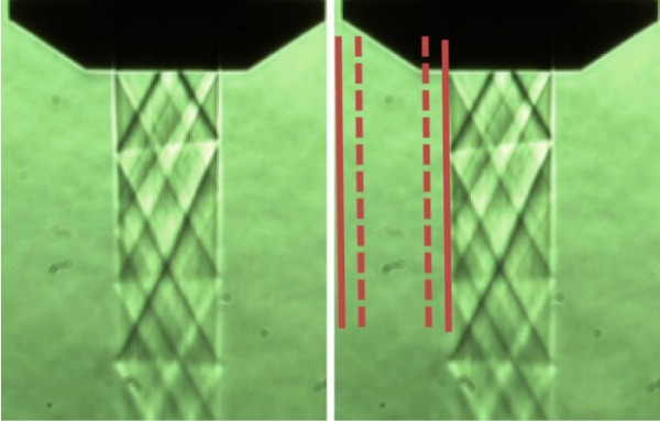 圖5. 標準X-Blast 噴嘴技術(左圖)和二合一環(huán)芯可調X-Blast 噴嘴技術氣體消耗的界面圖(右圖)