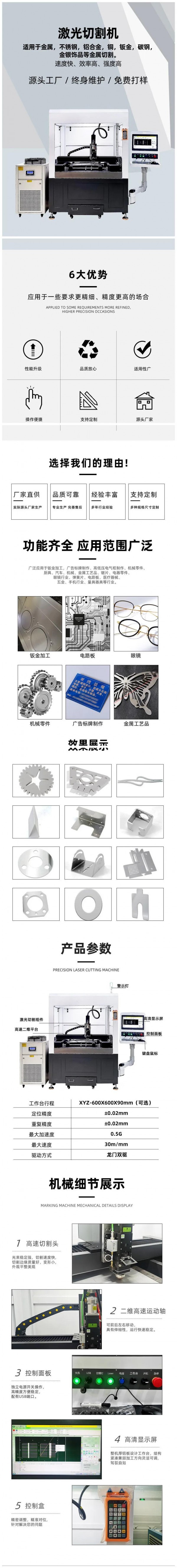 可切割材料多樣:幾乎能切割所有材料,包括金屬(如不銹鋼、鋁合金、鈦合金等)、非金屬(如玻璃、陶瓷、塑料、木材、皮革等)。