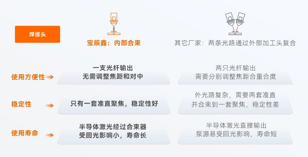 在靈活性與兼容性方面,該方案可根據具體工藝要求靈活搭配兩束激光,選擇不同光纖芯徑、不同波段半導體激光,適應多樣化焊接需求;加工時可靈活調整輸出參數,優化內外環激光搭配,在提升加工靈活性的同時,改善加工效率與質量;同時,其擴展編程接口兼容性良好,可適配現有加工系統,便于系統集成。