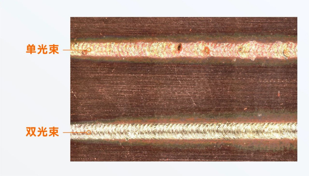傳統單光束焊接工藝中,由于能量高度集中,易引發熔池劇烈波動與金屬蒸汽噴射,進而產生飛濺、內部氣孔等缺陷,這些缺陷可能成為結構隱患,影響產品的安全性與可靠性。在焊接精密部件時,熱影響區的敏感性還易導致材料性能劣化;同時,單光束對焊縫成形的控制能力有限,難以滿足焊縫表面光滑度和一致性的嚴苛標準。