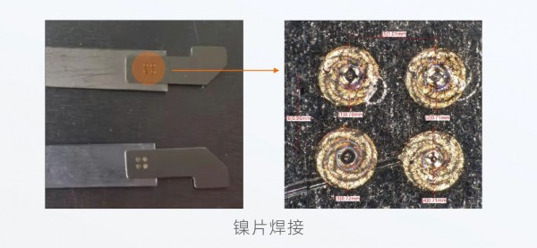 寶辰鑫以風冷QCW激光器150/1500W為核心光源,并配備專業的振鏡頭和控制系統等,為客戶搭載了一站式的QCW準連續精密應用解決方案。在實際焊接應用中,無論是疊焊到鍍鎳銅上,還是疊焊到鋁上,均可觀測到焊接外觀較好,無氣孔炸點,背面無焊穿,拉力>1.5kgf,滿足客戶要求。