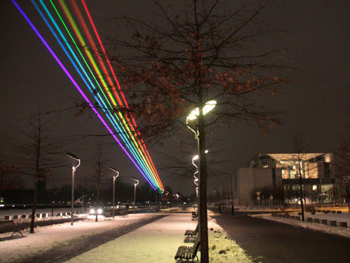 夢幻激光:剛開始時,激光的色彩是相當有限的:氦氖激光器和紅寶石發出紅光,其他激光器則產生不可見的紅外光。第一次實現七彩激光的是離子激光器,它通過在氬或氪中的高壓放電產生激光。氬氣產生藍色和綠色的光,氪產生其他幾種顏色,兩種氣體的混合可以產生整個可見光譜中的顏色。激光秀從此誕生。