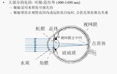 不同波譜的激光對身體器官的影響不同,近紅外和可見光可直達視網膜,可直達視網膜,對視覺神經造成不可恢復傷害。:
